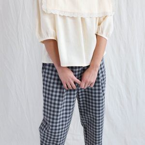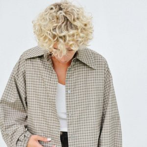 Oversized Top In Beige Double Gauze Checks Offon