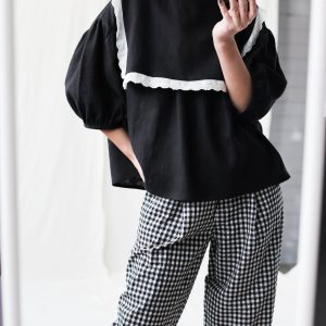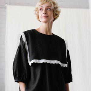 Oversized Large Collar Black Linen Blouse Amelia Offon