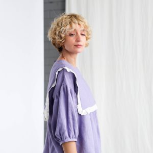 Oversized Large Collar Lavender Linen Blouse Amelia Offon