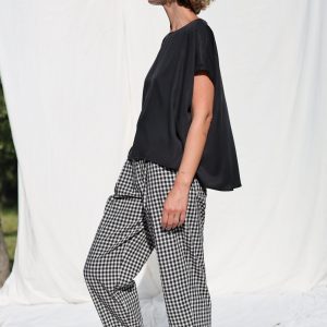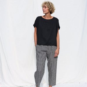 Checkered Linen Oversized Short Sleeve Top Offon Clothing