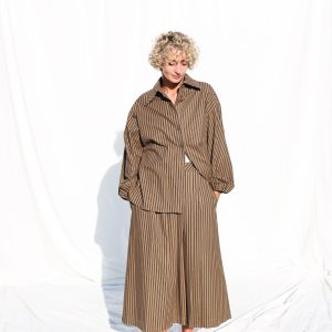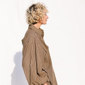 Oversized Long Sleeve Shirt In Khaki Stripes Elian