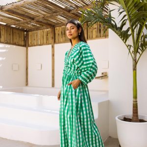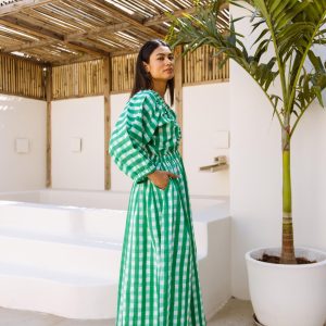 Be the first to review “The Piper Dress Green Gingham Block Print” Cancel reply