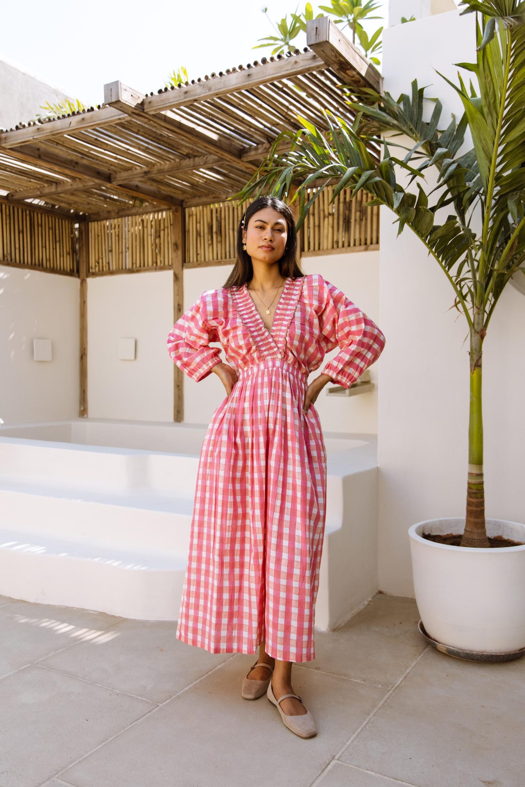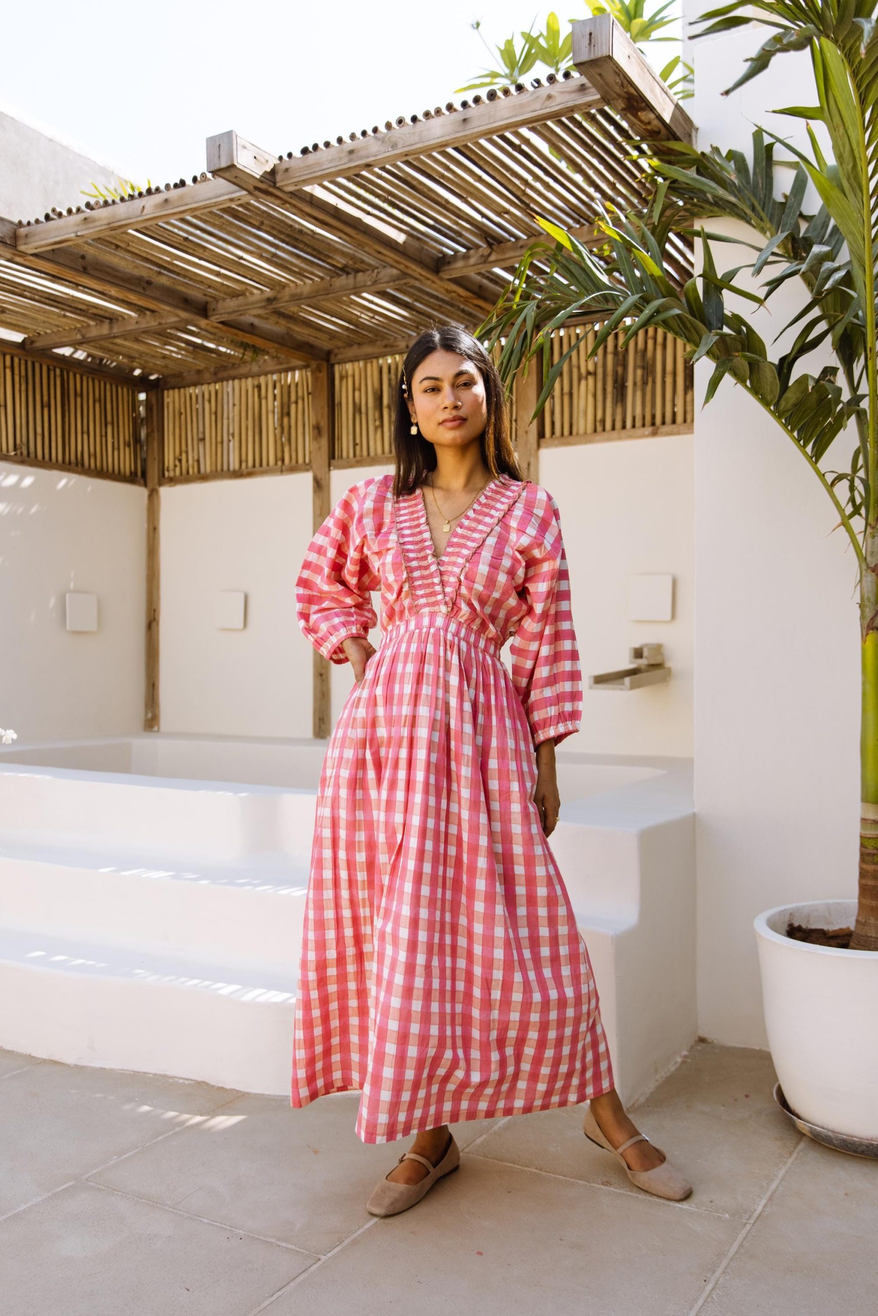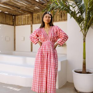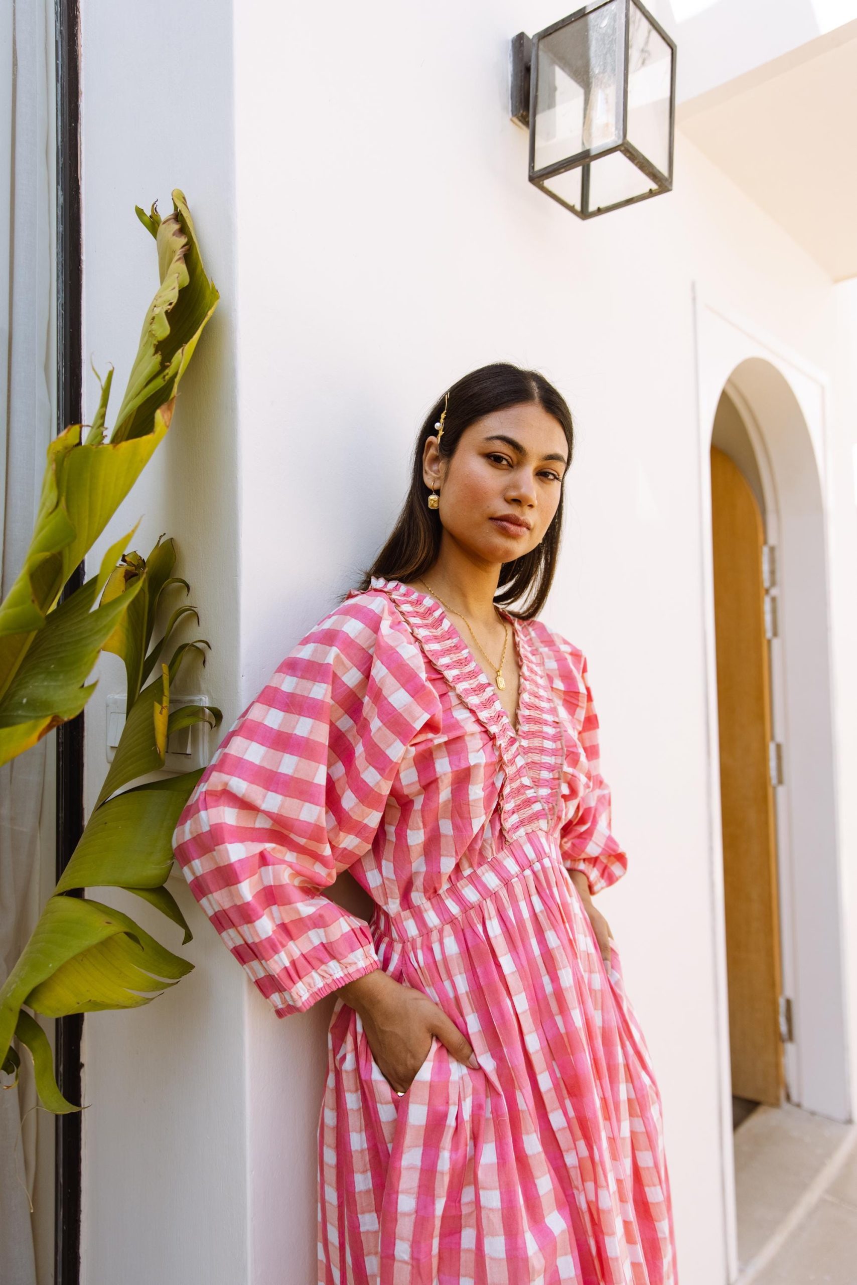 Be the first to review “The Piper Dress Pink Gingham Block Print” Cancel reply