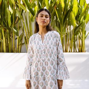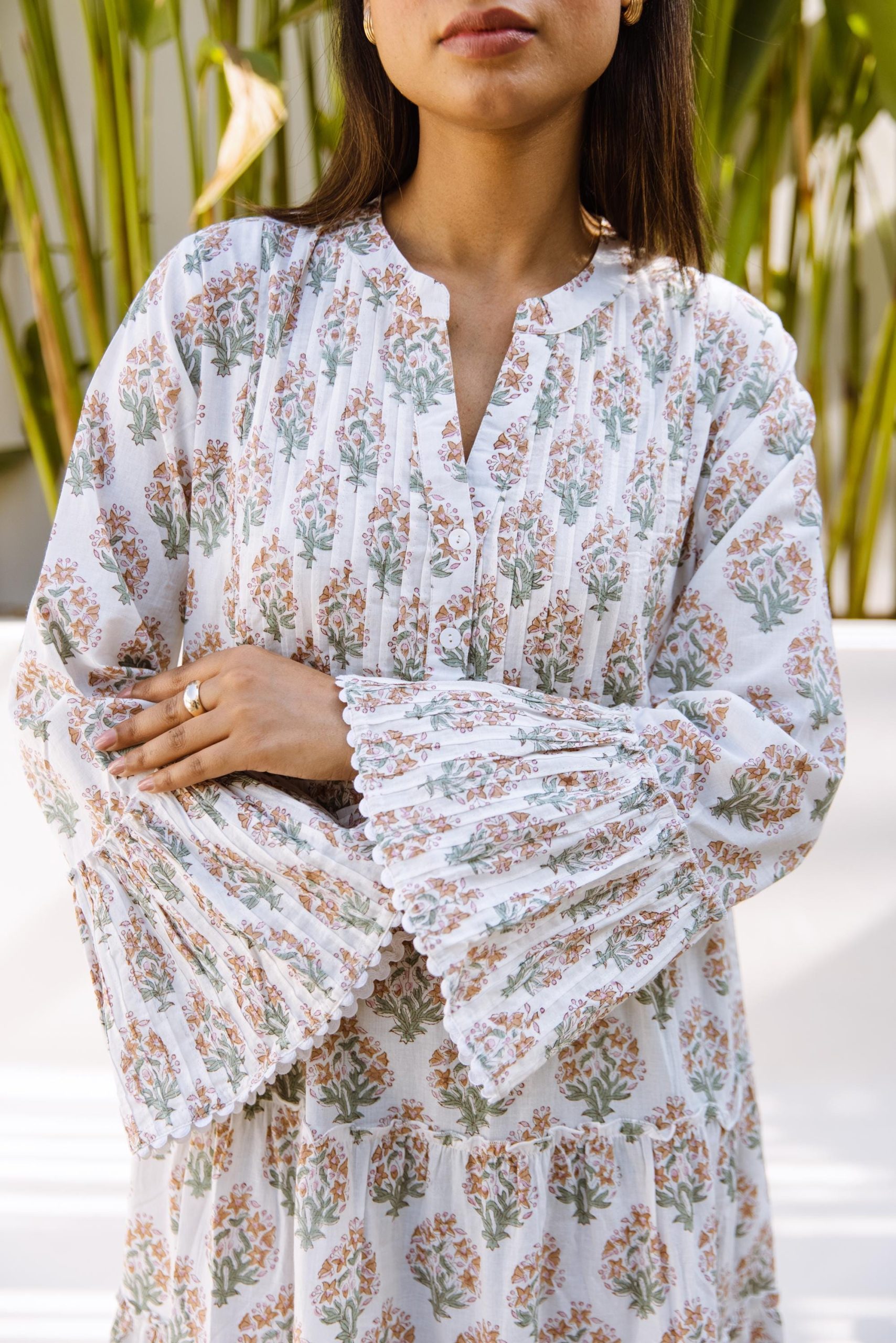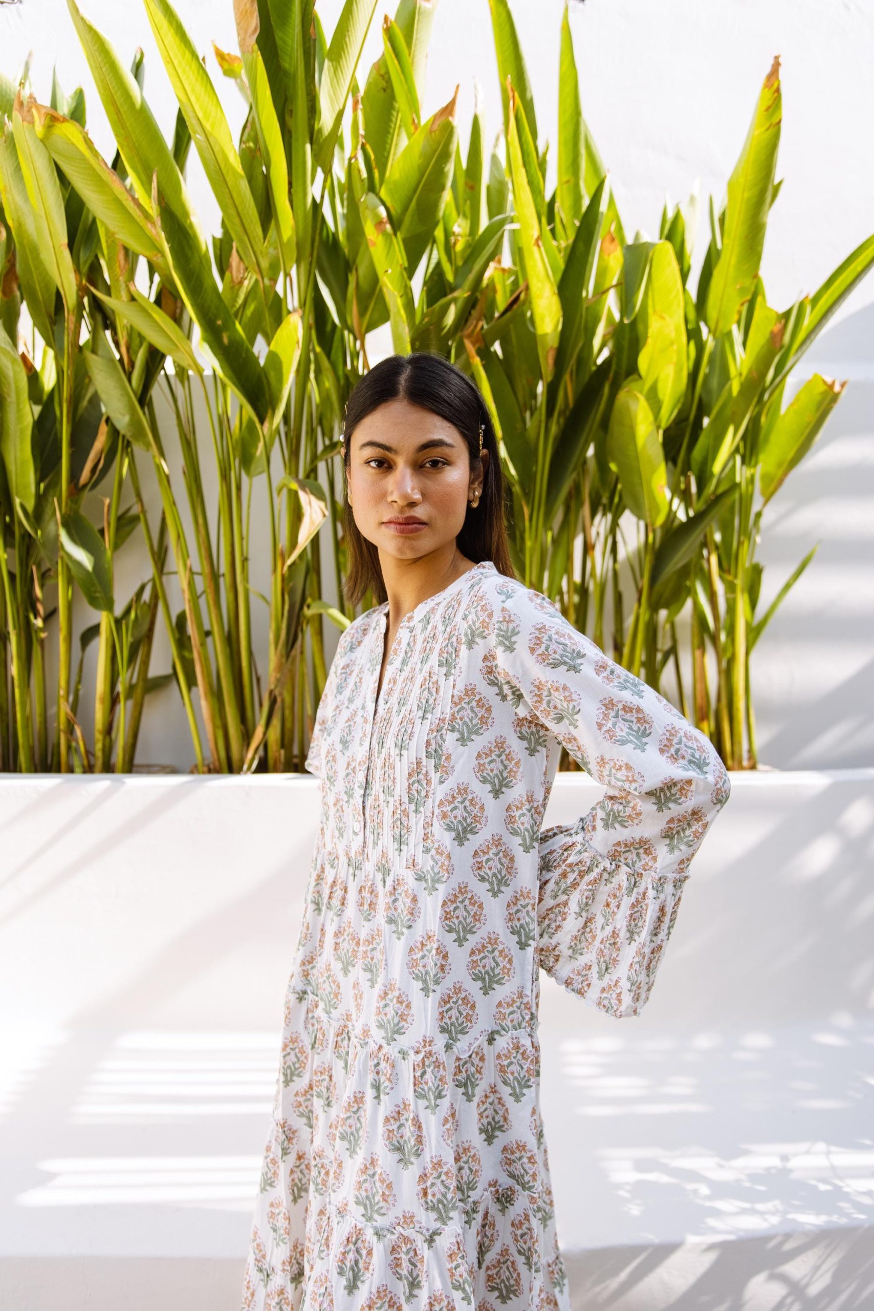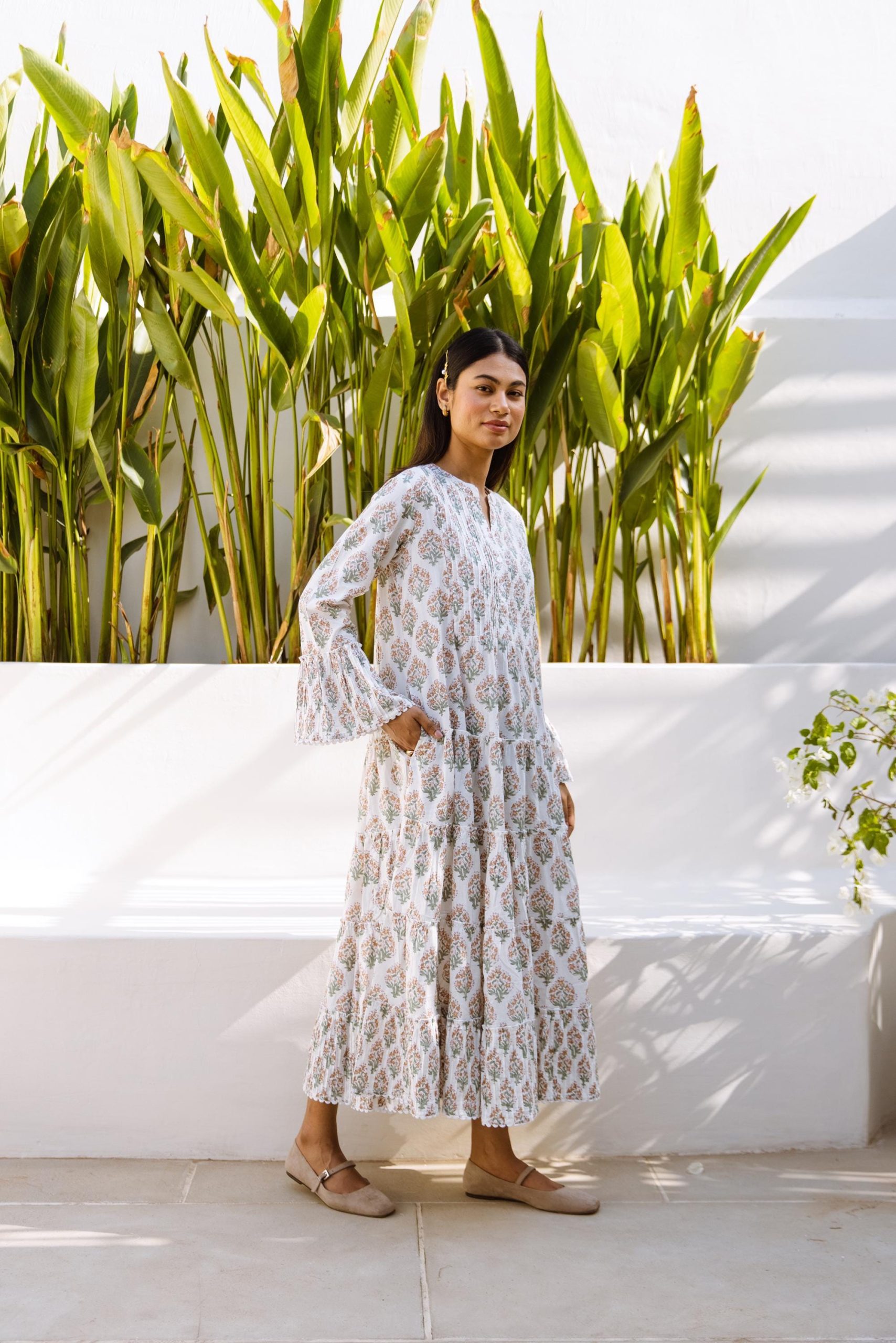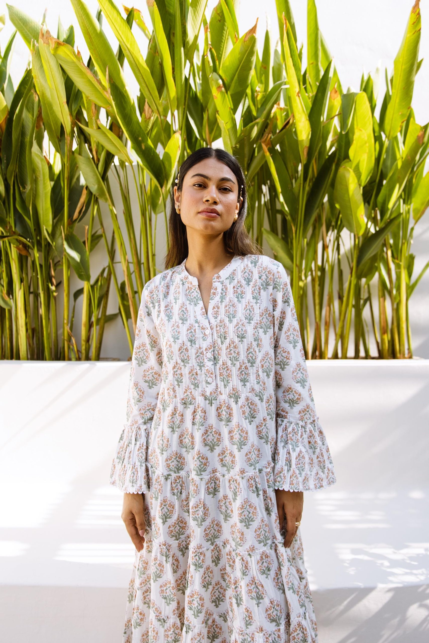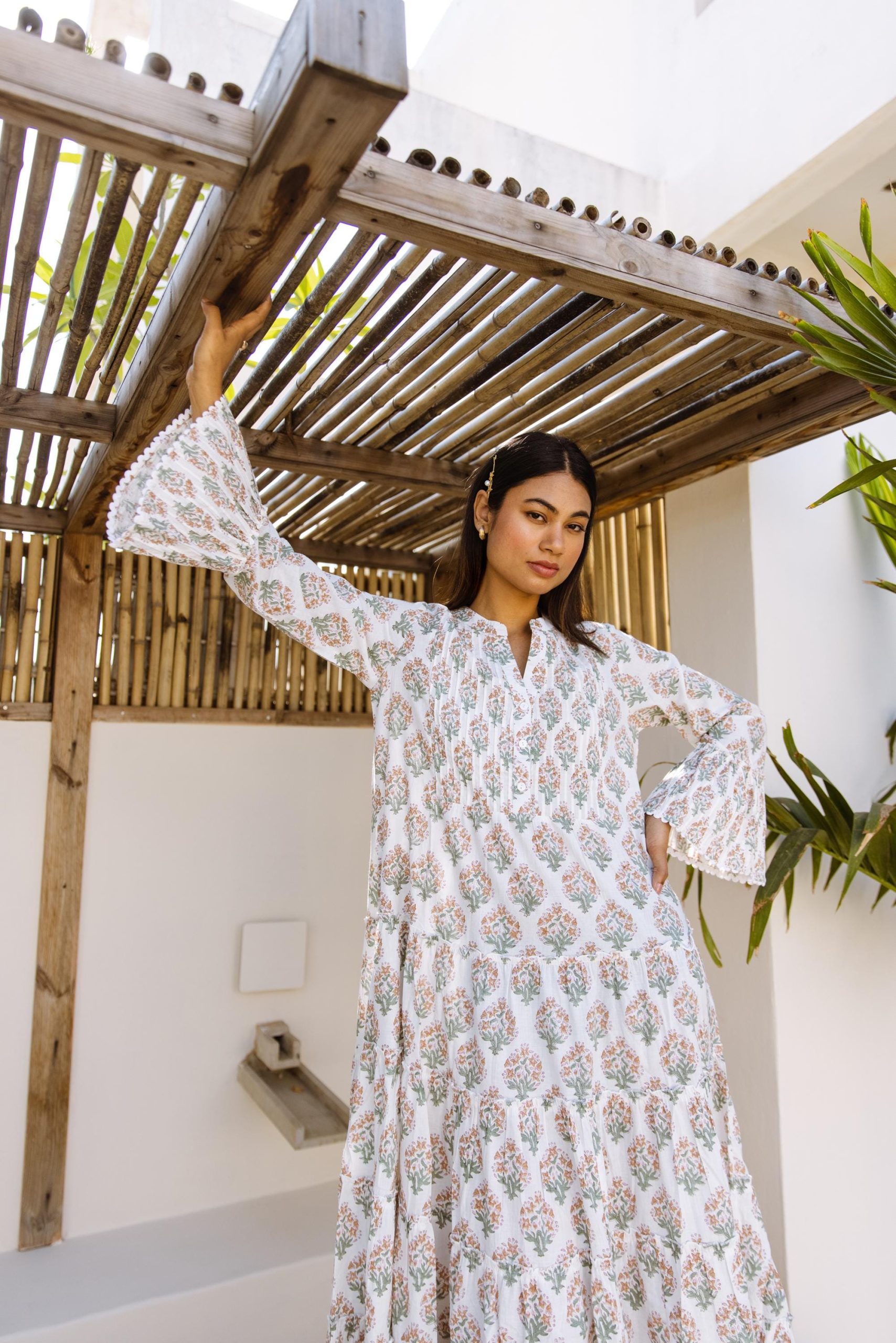 Beautiful midi dresses, designed in London and made in Jaipur, India, using the traditional art of hand block printing.